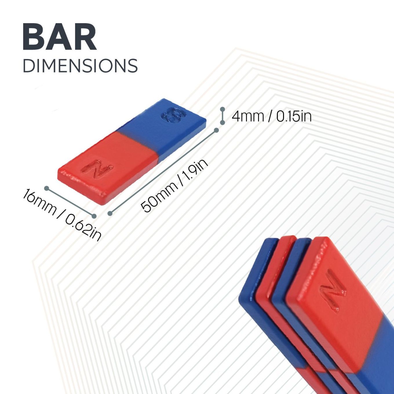 These painted Ceramic (Ferrite) bar magnets with identified poles are weakly magnetized making them safe for children and perfect for performing classroom experiments and teaching children the basics of magnetism.