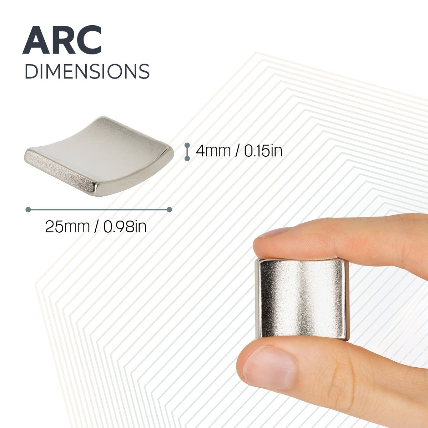 High-performance Neodymium (N42) arc magnet available with either pole on the inner radius.