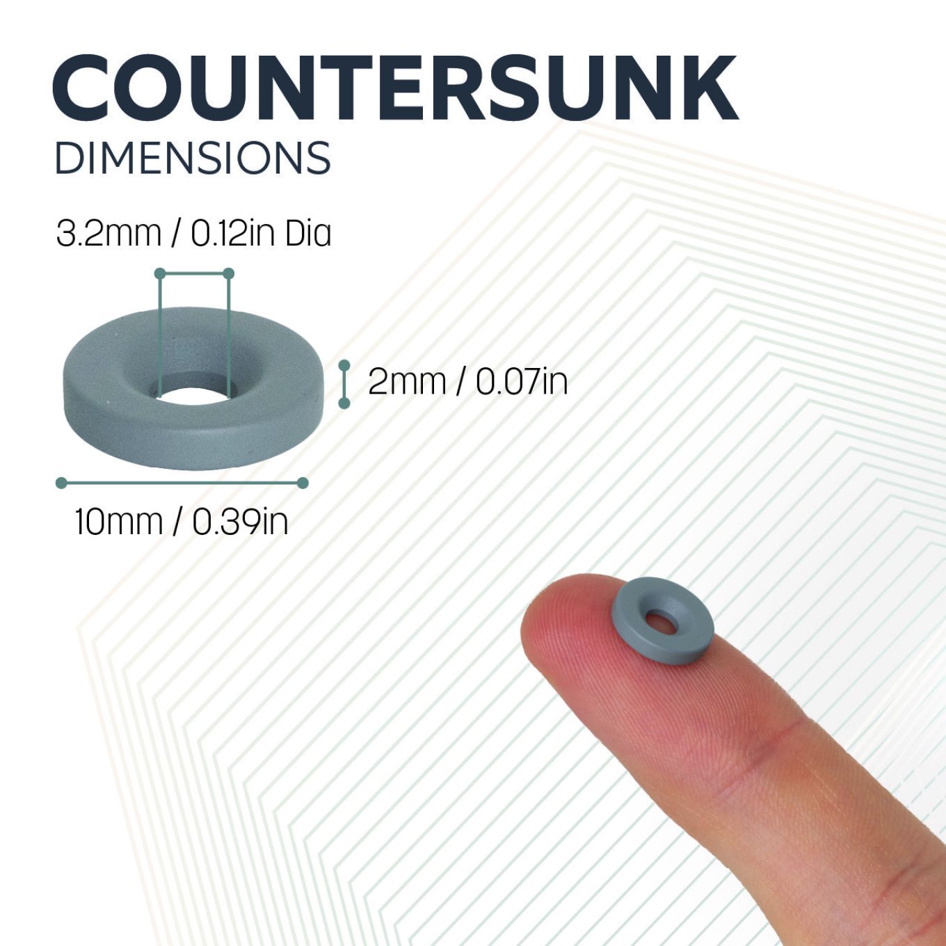 Ideal for furniture fixings, hanging artwork and keeping doors and drawers closed, countersunk magnets have a central hole which allows them to be fixed to non-magnetic surfaces with a screw.