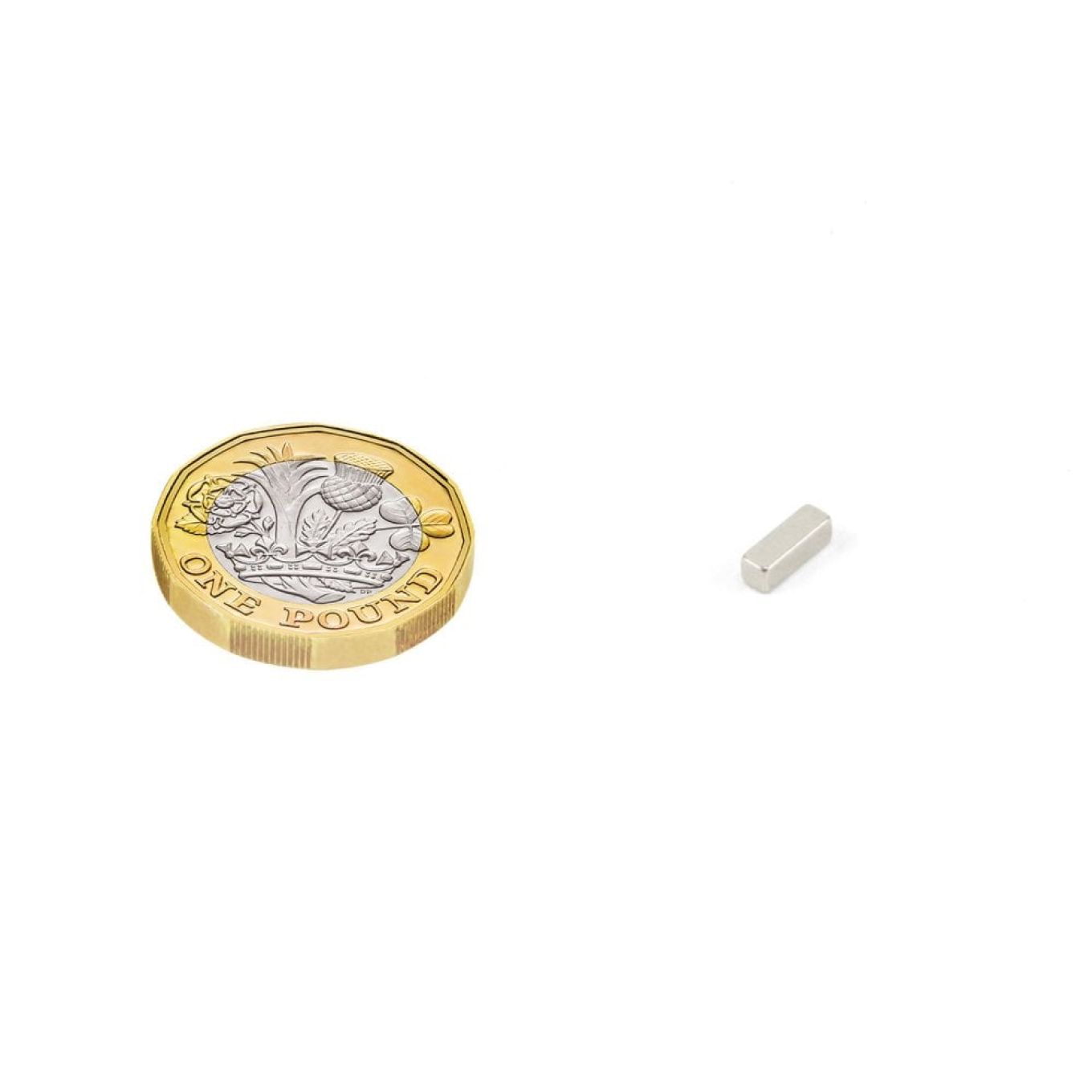 These precision neodymium rectangular magnets are axially magnetised between the two 2.5mm (0.1 in.) x 7.5mm (0.3 in.) rectangular faces and provide a maximum pull of 0.4kg (0.88lbs). Every magnet has a triple coating of nickel, copper and nickel again to prevent against corrosion. Our neodymium magnets have many creative uses including model-making, theatre design, furniture making, exhibitions, retail displays and packaging. They also have many uses in engineering and manufacturing where small size and maximum strength are required.