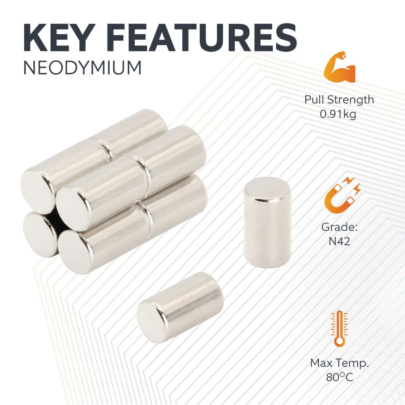 - Each magnet is coated with three layers of nickel, copper and nickel to improve corrosion resistance and provide a smooth and clean finish.