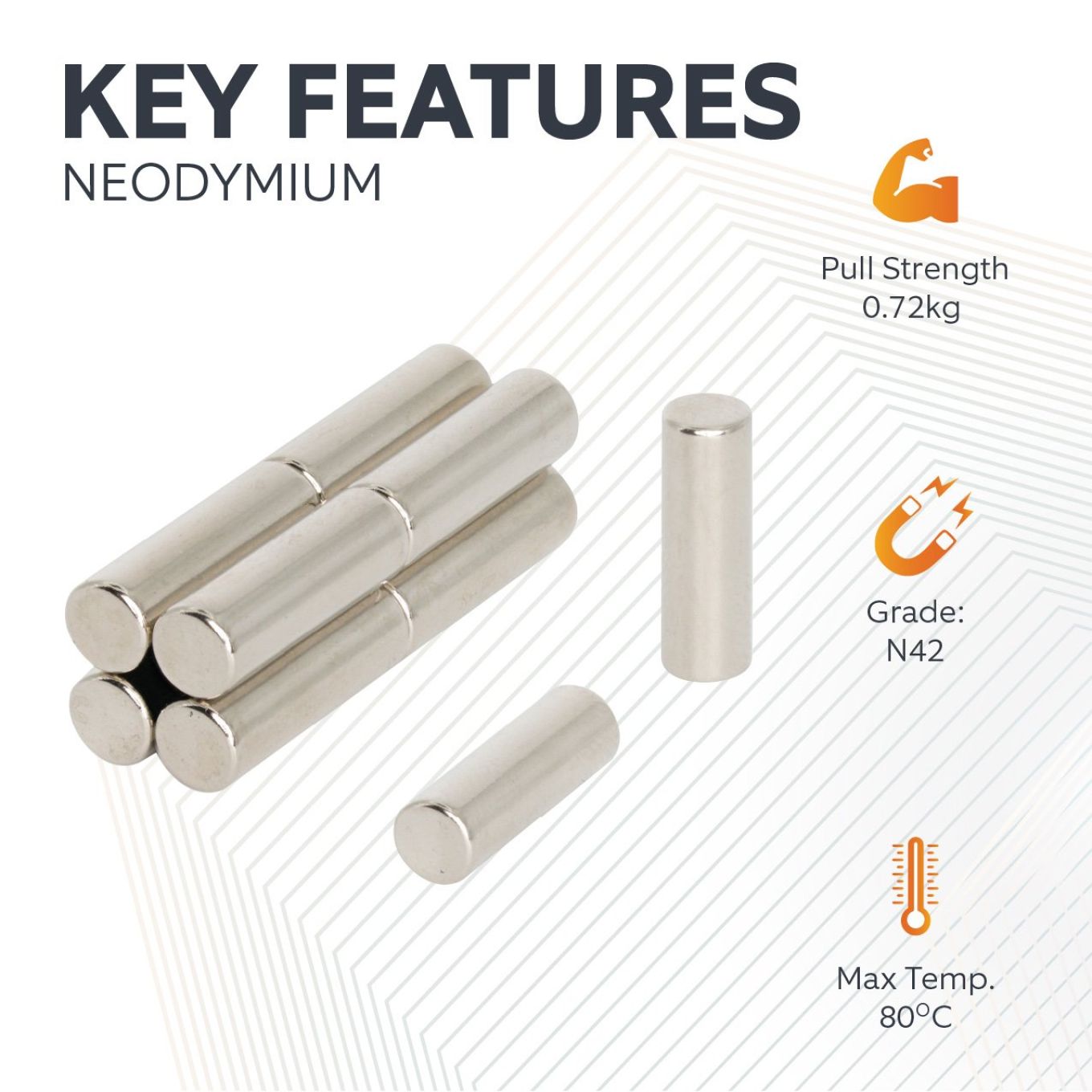 High-performance Neodymium (N42) rod magnet - small but incredibly strong.