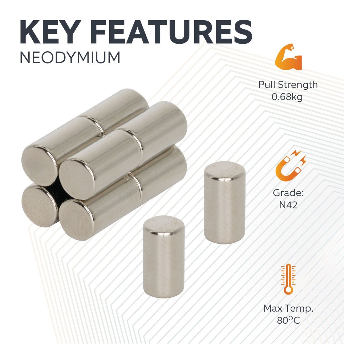 - Each magnet is coated with three layers of nickel, copper and nickel to improve corrosion resistance and provide a smooth and clean finish.
