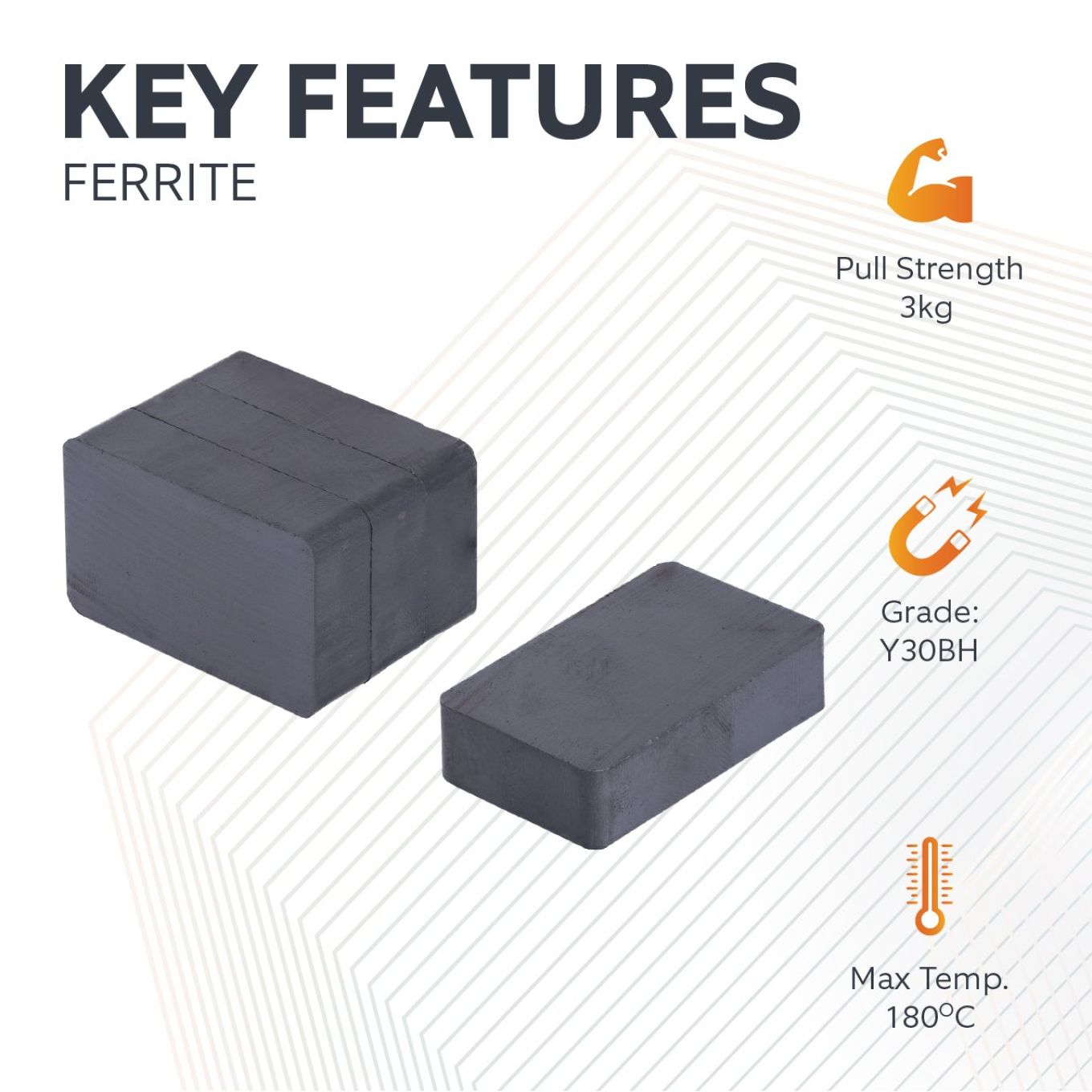 Ceramic (Ferrite) (Y30BH) rectangular block magnet - excellent resistance to demagnetisation and corrosion at unbeatable value.