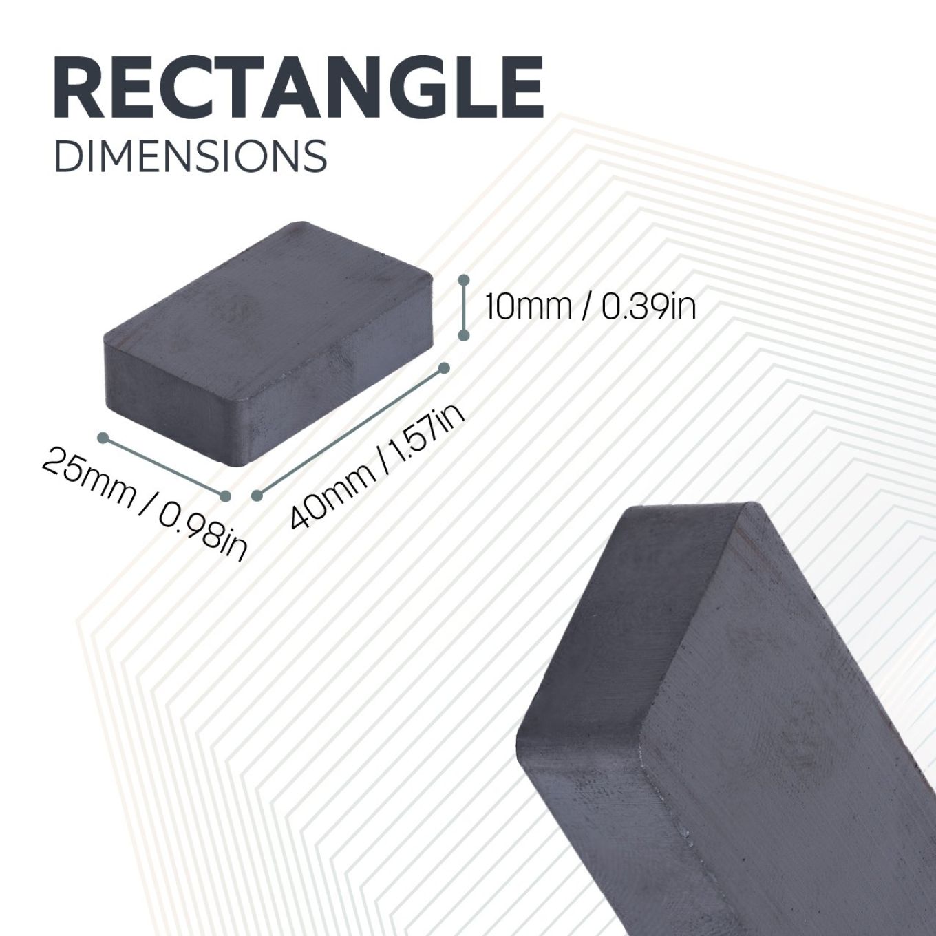 - Each magnet's north and south poles are on opposite 40mm (1.58 in.) x 25mm (0.98 in.) rectangular faces.